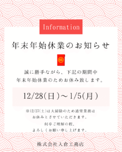 誠に勝手ながら、年末年始期間中の弊社事務所の